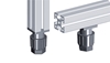 Compact levelling knuckle foot that mounts on aluminium profiles.